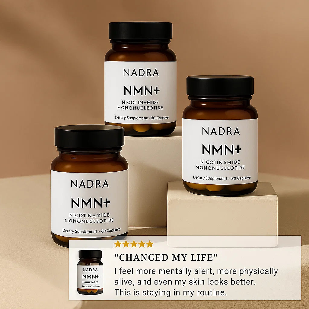 Nadra NMN+ helps you reclaim your spark, sharpen your mind, and support aging from the cellular level up.